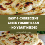 This 4 Ingredient Greek Yogurt Naan recipe offers a quick and easy homemade flatbread without the need for yeast. Made with simple pantry staples—flour, baking powder, salt, and creamy Greek yogurt—this naan comes together effortlessly in under 30 minutes. Cooked in a cast iron skillet, it results in soft, slightly chewy flatbreads perfect for accompanying curries, dips, or enjoyed on their own.