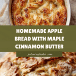 This Apple Bread recipe features a soft, flavorful dough mixed with sweet cinnamon-coated Granny Smith apples, baked in a French oven to produce a golden crust and tender crumb. Paired with a rich maple butter infused with brown sugar and cinnamon, this bread is perfect for a cozy breakfast or an indulgent snack.