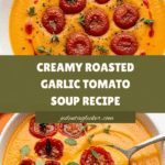 This creamy roasted garlic tomato soup is a comforting blend of sweet, caramelized tomatoes and mellow roasted garlic. Perfect for cozy evenings, it’s rich, smooth, and pairs wonderfully with a classic grilled cheese sandwich.