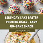 These Birthday Cake Batter Protein Balls are a fun and easy treat packed with flavor and protein. Perfect for a quick snack or a celebration, they combine creamy peanut butter, sweet honey, and festive rainbow sprinkles for a delicious, no-bake bite.