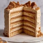 A luscious Biscoff Cookie Butter Cake featuring moist layers infused with cookie butter and swirled with melted Biscoff, topped with a creamy cookie butter buttercream and crunchy Biscoff cookie crumbs for added texture. Perfect for cookie butter lovers looking for a decadent yet perfectly balanced dessert.