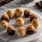 - Dip and Decorate: Using a fork or dipping tool, dip each chilled truffle into the melted chocolate. Tap off excess chocolate and place back on the parchment paper. Optionally, sprinkle crushed Biscoff cookies or sea salt on top before the chocolate sets.