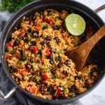 5. Finish with Beans: Stir in the drained and rinsed black beans gently. Taste the dish and adjust seasoning if necessary. Serve the rice and beans topped with fresh lime juice and additional chopped cilantro for brightness and freshness.