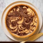 - Create the swirl effect: Using a skewer or sharp knife, swirl the batter and the caramel cream cheese layer together throughout the tart to create a marbled effect.