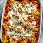 This Cheesy 20-Minute Baked Tortellini recipe combines tender cheese tortellini with a rich marinara sauce, Italian herbs, and a melty blend of mozzarella and Parmesan cheeses. It’s a quick and comforting baked pasta dish perfect for busy weeknights, featuring a crispy golden top and fresh herb garnish.