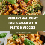 This colorful halloumi pasta salad is a vibrant mix of fresh vegetables, crispy fried halloumi, and pesto-coated pasta. It’s perfect for a light lunch or as a side dish to impress your guests with bold flavors and satisfying textures.