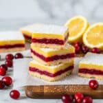 Keywords: cranberry lemon bars, cranberry dessert, lemon bars, holiday dessert, tart dessert, baked dessert, citrus bars