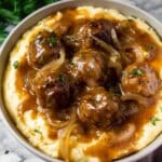 - Step 5: Serve the meatballs and onion gravy over rice or mashed potatoes for a hearty meal. Enjoy!