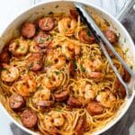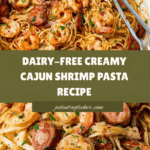 This Dairy-Free Creamy Cajun Shrimp Pasta is a flavorful and creamy dish that features smoky sausage, spicy cajun-seasoned shrimp, and tender fettuccine cooked in a rich coconut cream sauce. Perfect for those seeking a dairy-free, comforting meal packed with bold Southern-inspired flavors.
