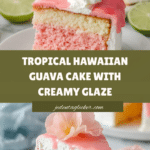 Keywords: Hawaiian Guava Cake, Strawberry Cake, Tropical Dessert, Guava Glaze, Cream Cheese Frosting, Coconut Flakes