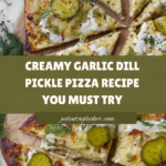 Keywords: Dill pickle pizza, garlic pizza, white sauce pizza, homemade pizza, unique pizza recipe, tangy pizza, savory pizza, pickle lovers, dill flavored pizza