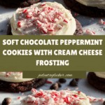 Keywords: chocolate peppermint cookies, holiday cookies, peppermint frosting, chocolate chip cookies, soft chewy cookies, cream cheese frosting