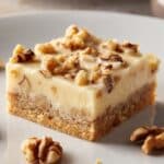 Ein köstlicher und einfacher Friss-dich-dumm-Kuchen mit Walnüssen, der mit einem mürben Boden, cremiger Vanillepuddingfüllung und karamellisierten Walnüssen begeistert. Perfekt für alle, die süße Leckereien mit Nussgeschmack lieben.