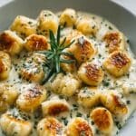 This Heavenly Millionaire Gnocchi recipe features pillowy potato gnocchi pan-seared to a golden crisp and coated in a luxurious creamy garlic sauce infused with Parmesan and fresh herbs. Ready in just 30 minutes, it’s a delightful and indulgent Italian-inspired dish perfect for a comforting weeknight dinner or special occasion.