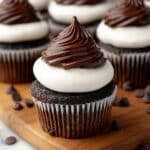 These Hi Hat Cupcakes feature a rich, moist chocolate base topped with a fluffy, glossy meringue frosting and a shiny chocolate coating. The cupcakes combine deep cocoa and espresso flavors with a light, sweet marshmallow-like topping, dipped in a smooth chocolate shell that hardens beautifully to create an elegant dessert perfect for any occasion.