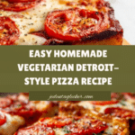 Detroit-style pizza is a thick, rectangular pie known for its crispy edges and cheesy, saucy topping. This homemade vegetarian version lets you enjoy the iconic flavors with fresh tomatoes and a blend of cheeses, all from scratch.