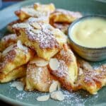 6. Mit Puderzucker, Mandelstiften oder Rosinen bestreuen und mit Vanillesoße oder Fruchtsoße servieren.