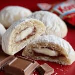 Achte darauf, dass der Teig vor dem Verarbeiten richtig kalt ist, damit die Plätzchen ihre Form behalten. Die Kinderriegel sollten in der Mitte des Teigs komplett umschlossen sein, damit sie beim Backen nicht auslaufen. Das Wälzen in Puderzucker verleiht den Plätzchen eine schöne und süße Optik.