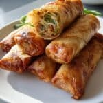 Diese knusprigen Hähnchen-Frühlingsrollen sind in nur 15 Minuten fertig und werden in der Heißluftfritteuse perfekt goldbraun und lecker. Gefüllt mit zartem Hähnchen, Glasnudeln und frischem Gemüse, bieten sie eine gesunde und schmackhafte Mahlzeit oder einen tollen Snack.