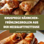 Knusprige Hähnchen-Frühlingsrollen sind ein köstlicher Snack oder eine leckere Vorspeise, die in nur 15 Minuten zubereitet werden kann. Mit der Heißluftfritteuse gelingen sie besonders knusprig und fettarm. Dieses Rezept kombiniert zartes Hähnchen mit frischem Gemüse und Glasnudeln zu einer unwiderstehlichen Füllung.