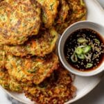 Korean Vegetable Pancakes are a crispy, savory treat filled with fresh zucchini, carrots, and green onions. These pancakes are quick to make and perfect for a snack or appetizer with a flavorful dipping sauce.