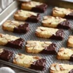 Diese Mandelstangen sind ein köstliches, einfach zuzubereitendes Gebäck mit einer zarten Marzipanschicht, knusprigen Mandeln und einem verführerischen Zartbitterschokoladenguss. Perfekt für Naschkatzen und ideal zum Teilen bei Kaffee- oder Teerunden.