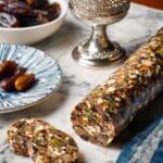 Keywords: Date roll, nut snack, healthy snack, Middle Eastern sweets, no bake sweets, vegan date roll option