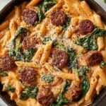 Keywords: Cajun sausage pasta, creamy pasta, one pot pasta, Andouille sausage recipe, quick dinner, spicy sausage pasta