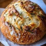 This Rosemary & Roasted Garlic Artisan Bread recipe offers a fragrant, flavorful homemade loaf with the perfect crust and chewy texture. Infused with roasted garlic and fresh rosemary, this bread is baked in a Dutch oven to achieve a golden, artisan-quality crust. The slow rise and overnight refrigeration develop complex flavors, making it ideal for serving alongside soups, salads, or charcuterie boards.