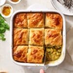 A flavorful and comforting Samosa Pie that combines the classic spices and ingredients of traditional samosas in a hearty baked pie form. Ground chicken, potatoes, peas, and aromatic spices are simmered together, then baked under a flaky puff pastry crust for a delicious, easy-to-make meal.