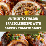 This authentic Braciole recipe features thinly sliced beef rolled with a flavorful herb and breadcrumb filling, seared to perfection, and then slowly braised in a rich tomato sauce. It’s a classic Italian dish that pairs wonderfully with pasta, polenta, or mashed potatoes, delivering a savory and tender meal bursting with traditional flavors.