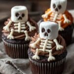Diese süßen und schaurigen Skeleton Cupcakes sind perfekt für Halloween! Mit Schokoladen-Cupcakes, Marshmallows und einem kleinen Deko-Kunstwerk zauberst du im Handumdrehen gruselige Skelettfiguren, die nicht nur Kinder begeistern.