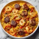 Savor the bold flavors of Shrimp Sausage Dirty Rice, a hearty and comforting dish packed with Cajun spices and tender seafood. This one-pan meal combines rice, shrimp, smoked sausage, and vibrant vegetables for a satisfying dinner that’s easy to prepare any night of the week.