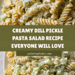 This Simple Dill Pickle Pasta Salad is a tangy and creamy side dish perfect for picnics, potlucks, or a refreshing summer meal. Featuring rotini pasta tossed with chopped dill pickles, creamy mayonnaise and sour cream dressing infused with pickle brine, and flavorful dill, this salad combines crunchy textures with zesty flavors for a delightful bite every time.
