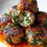 Delicious spinach garlic meatballs loaded with melted mozzarella inside a savory ground beef or turkey mixture, enhanced with fresh spinach, garlic, and Italian seasonings. These versatile meatballs can be baked or pan-seared and optionally simmered in marinara sauce for extra flavor—perfect for weeknight dinners or gatherings.
