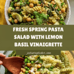 A fresh and vibrant Spring Pasta Salad featuring tender pasta, blanched asparagus and peas, hearty chickpeas, marinated artichoke hearts, and a zesty lemon basil vinaigrette. Perfect as a light lunch or side dish, this salad is easy to prepare and bursting with spring flavors.