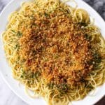 Keywords: St. Joseph’s Spaghetti, Italian pasta, anchovy pasta, garlic spaghetti, toasted breadcrumbs, pine nuts, easy pasta recipe