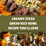 This Steak Queso Rice bowl offers a delightful combination of tender, seasoned steak, creamy queso sauce, and flavorful rice. It’s a satisfying meal that brings comfort and a touch of spice in every bite. Perfect for a weeknight dinner or casual gathering.