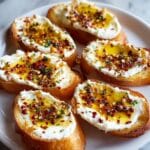 Sweet and Spicy Whipped Feta Crostini with Hot Honey is a delightful appetizer that balances creamy, tangy cheese with a touch of heat and sweetness. Perfect for entertaining or a flavorful snack, these crispy baguette slices topped with whipped feta and drizzled with hot honey will impress every palate.