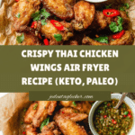 Crispy and flavorful Thai Chicken Wings cooked in the air fryer with a quick fish sauce marinade and served with a spicy jaew dipping sauce, perfect for Paleo, Whole30, and Keto diets. These wings are easy to prepare, deeply aromatic, and have a perfect balance of spicy, tangy, and savory flavors.