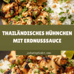 Ein köstliches thailändisches Gericht mit zarten Hähnchenstücken, knackigem Gemüse und einer cremigen Erdnusssauce, verfeinert mit Kokosmilch, Sojasauce und Limette.