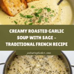 This Traditional Country French Style Garlic Soup features slow-roasted garlic blended into a savory chicken stock enriched with dried sage and a creamy Dijon-egg yolk emulsion. The roasting enhances the garlic’s natural sweetness, creating a rich, comforting soup perfect for a cozy meal.