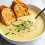 - Combine and Serve: Stir the mashed roasted garlic and the emulsified egg mixture into the hot chicken stock simmering in the pot. Whisk well to fully blend all ingredients. Serve the soup hot, optionally accompanied by roasted slices of baguette for a classic French touch.