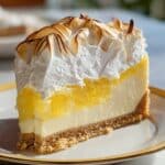 This Triple Lemon Meringue Cheesecake is a luscious dessert featuring a graham cracker crust, creamy lemon-infused cheesecake, a tangy homemade lemon curd layer, and a light, fluffy golden meringue topping. Baked in a water bath for a silky texture and finished with a beautifully toasted meringue, this cheesecake combines rich creaminess with bright citrus flavors for an unforgettable treat.