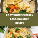 This creamy and comforting White Chicken Lasagna Soup combines tender shredded chicken, broken lasagna noodles, fresh vegetables, and a rich parmesan cream broth. Perfect for a cozy meal, it delivers all the flavors of lasagna in a hearty and easy-to-make soup form. Topped with extra cheese and served with crusty buttered bread, it’s an inviting dish that warms you up from the inside out.